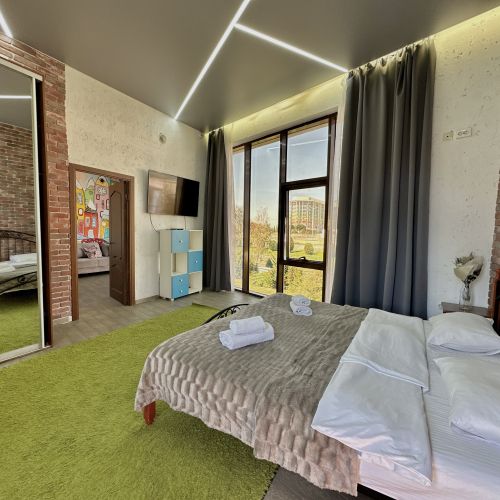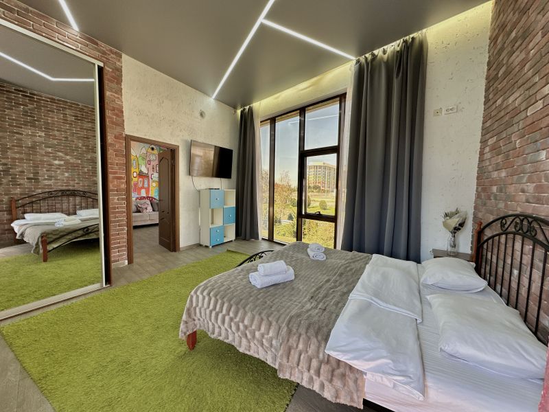 и 6-местные апартаменты с кухней. Везде имеется санузел с душем и стиральной машиной, в комнатах – телевизор, кондиционер и безлимитный интернет.