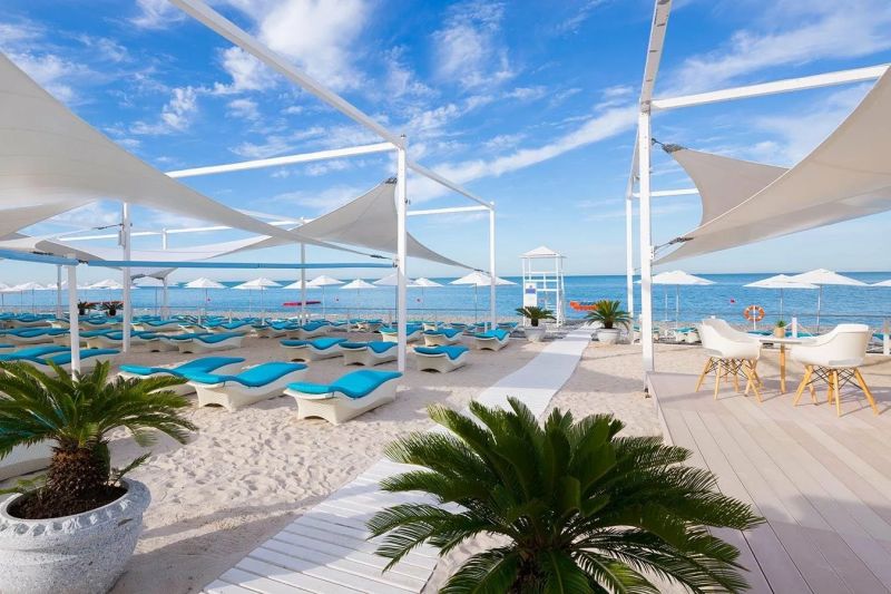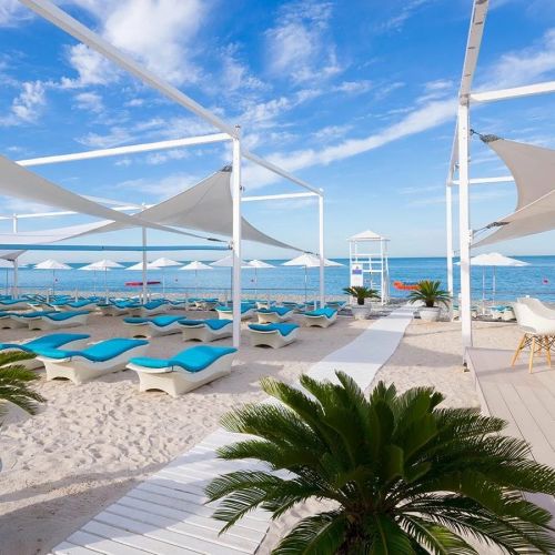 За 15 – 20 минут можно дойти до городского пляжа. На галечном побережье есть все, что нужно для комфортного отдыха у воды: бары, раздевалки, лежаки, шезлонги.