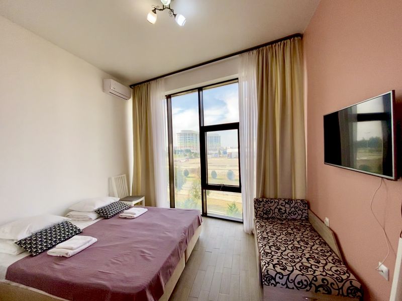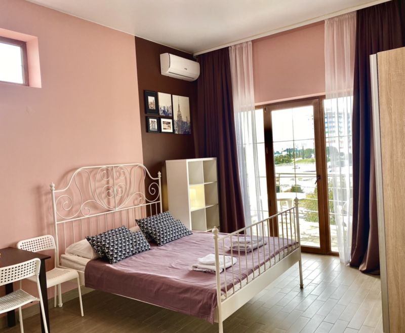 Поездом до ж/д вокзала Адлер, далее на маршрутке №560 до остановки «Бар Терраса», затем пройти 450 м до апарт-отеля.