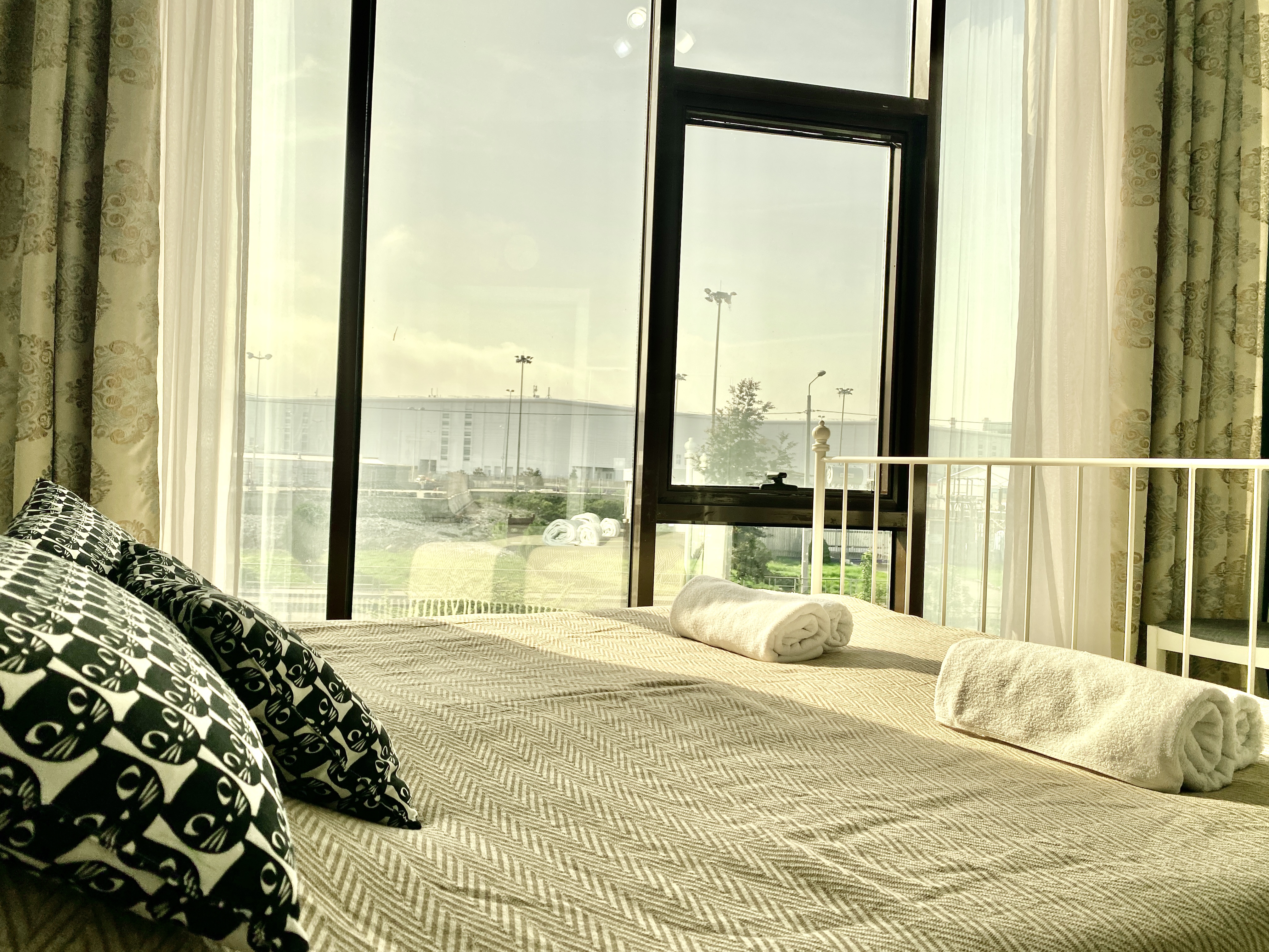 - Оборудование: гладильная доска, кондиционер, сушилка для белья, телевизор, утюг, холодильник