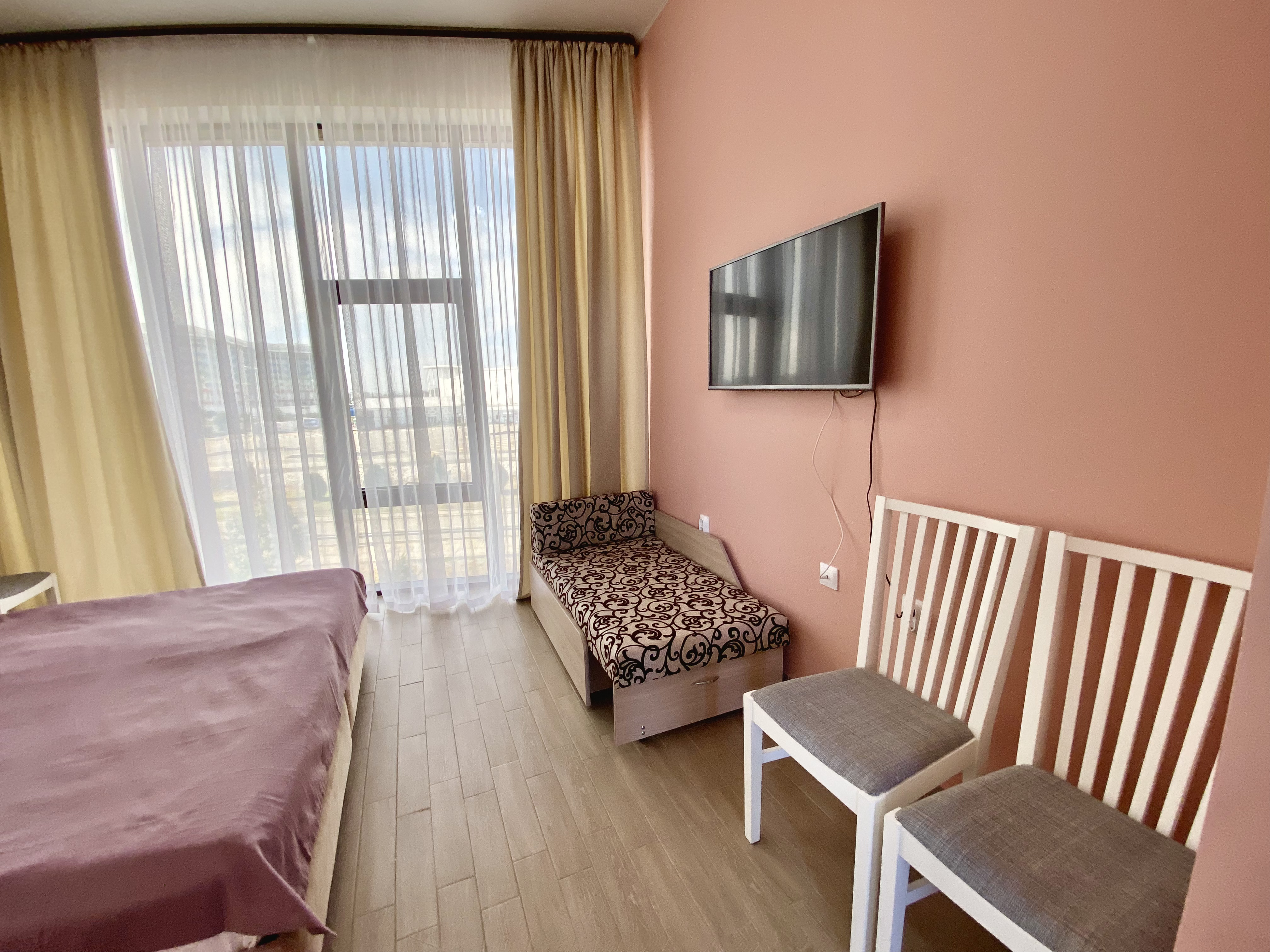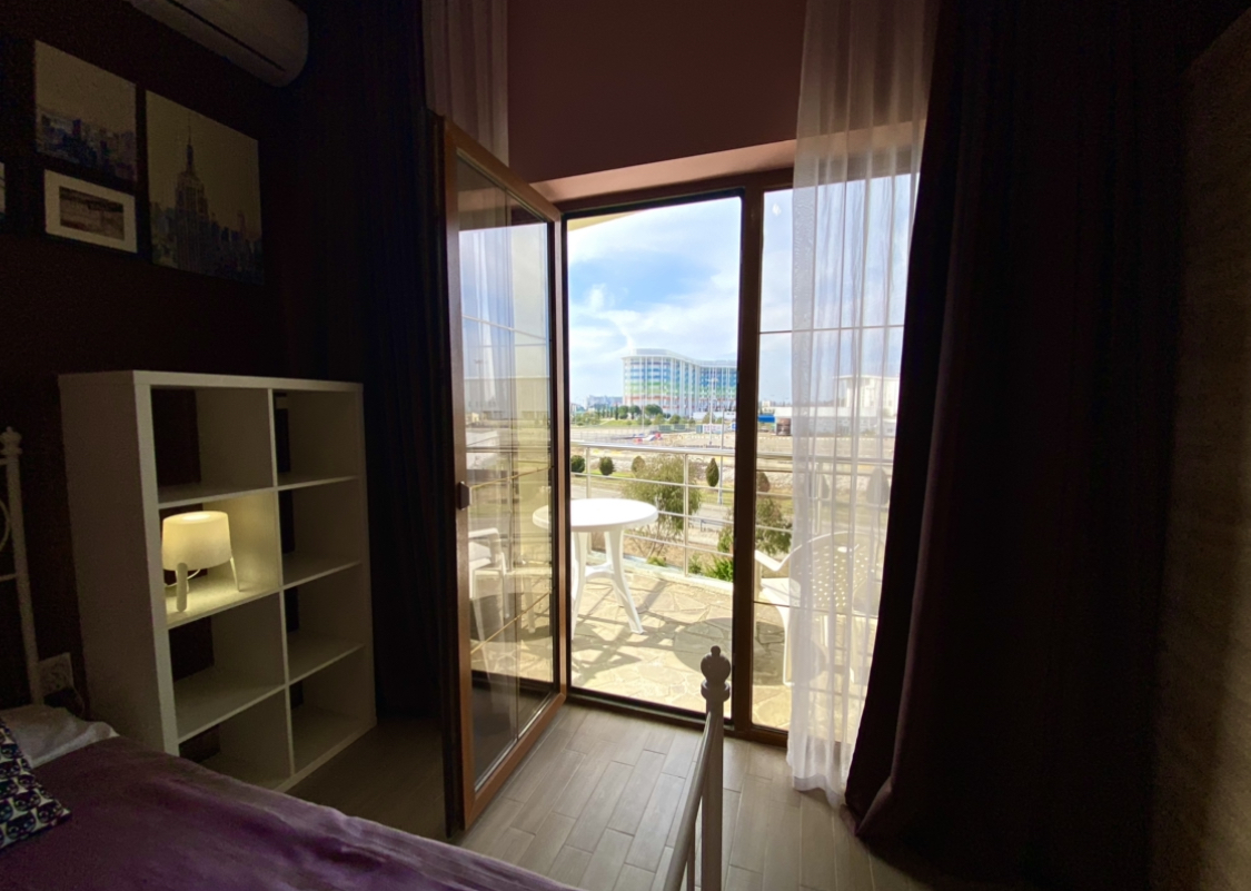Поездом до ж/д вокзала Адлер, далее на маршрутке №560 до остановки «Бар Терраса», затем пройти 450 м до апарт-отеля.